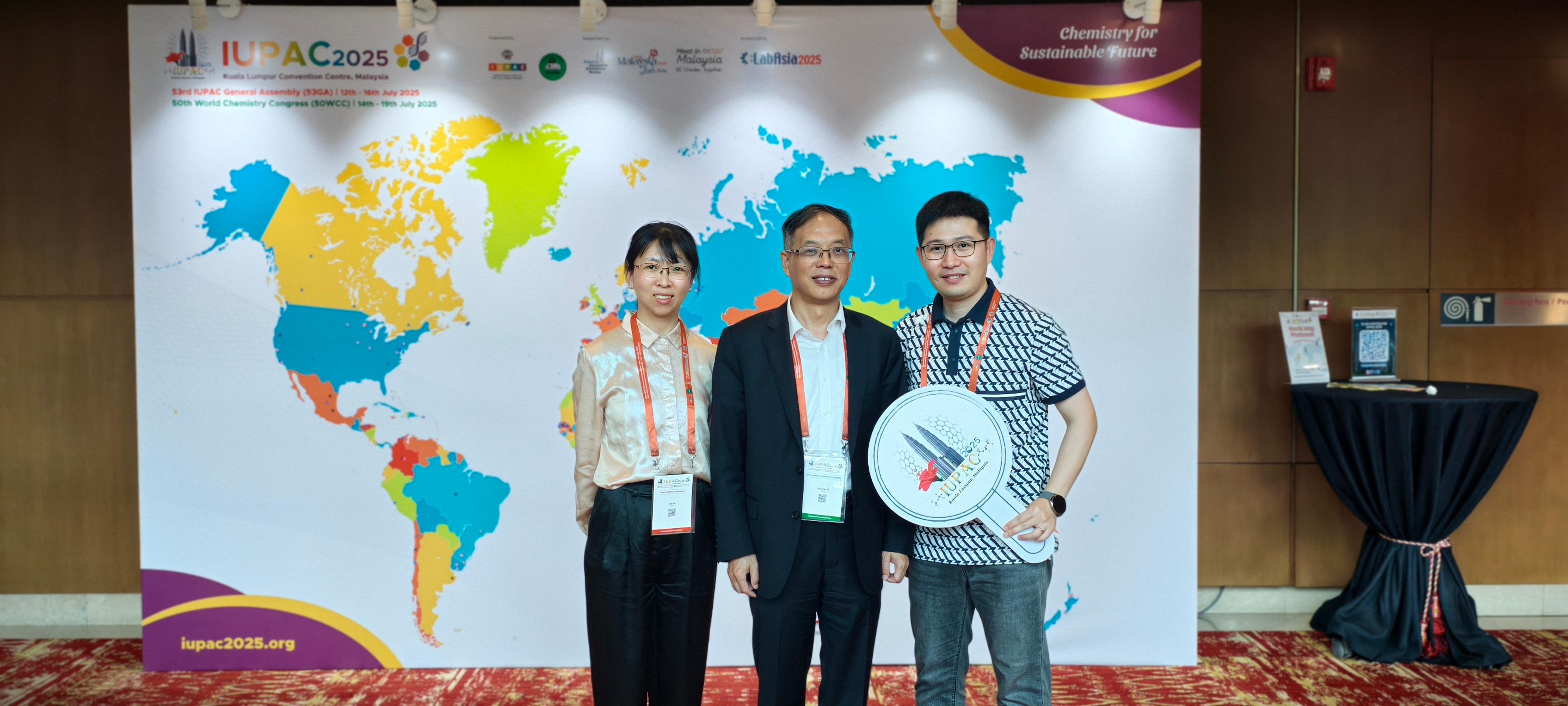 From July 12 to 19, the 53rd IUPAC General Assembly & the 50th World Chemistry Congress took place in Kuala Lumpur, Malaysia, under the theme ¡°Chemistry for a Sustainable Future¡±. Mr. Li Haoran, Honorary Dean of the NHU Research Institute, Ms. Yu Lili, Assistant Dean and Deputy Director of the Product R&D Department, and Mr. He Qiyang, Deputy Director of the Science and Technology Cooperation Department, joined over 3,000 chemists from around the world to explore the vital role of chemical science in addressing global sustainability challenges.